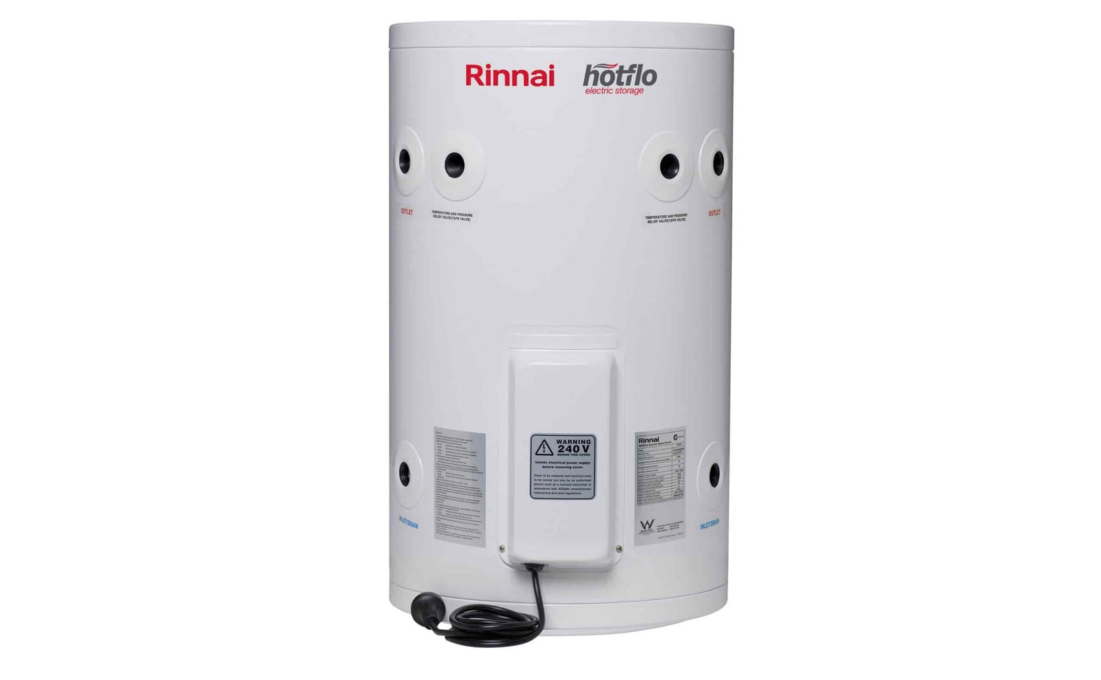 Introducing the Rinnai Hotflo 50 Litre Electric Hot Water Heater with Plug—a reliable and efficient solution for your hot water needs. This compact unit is perfect for both indoor and outdoor installations, providing consistent hot water delivery for small to medium-sized households.